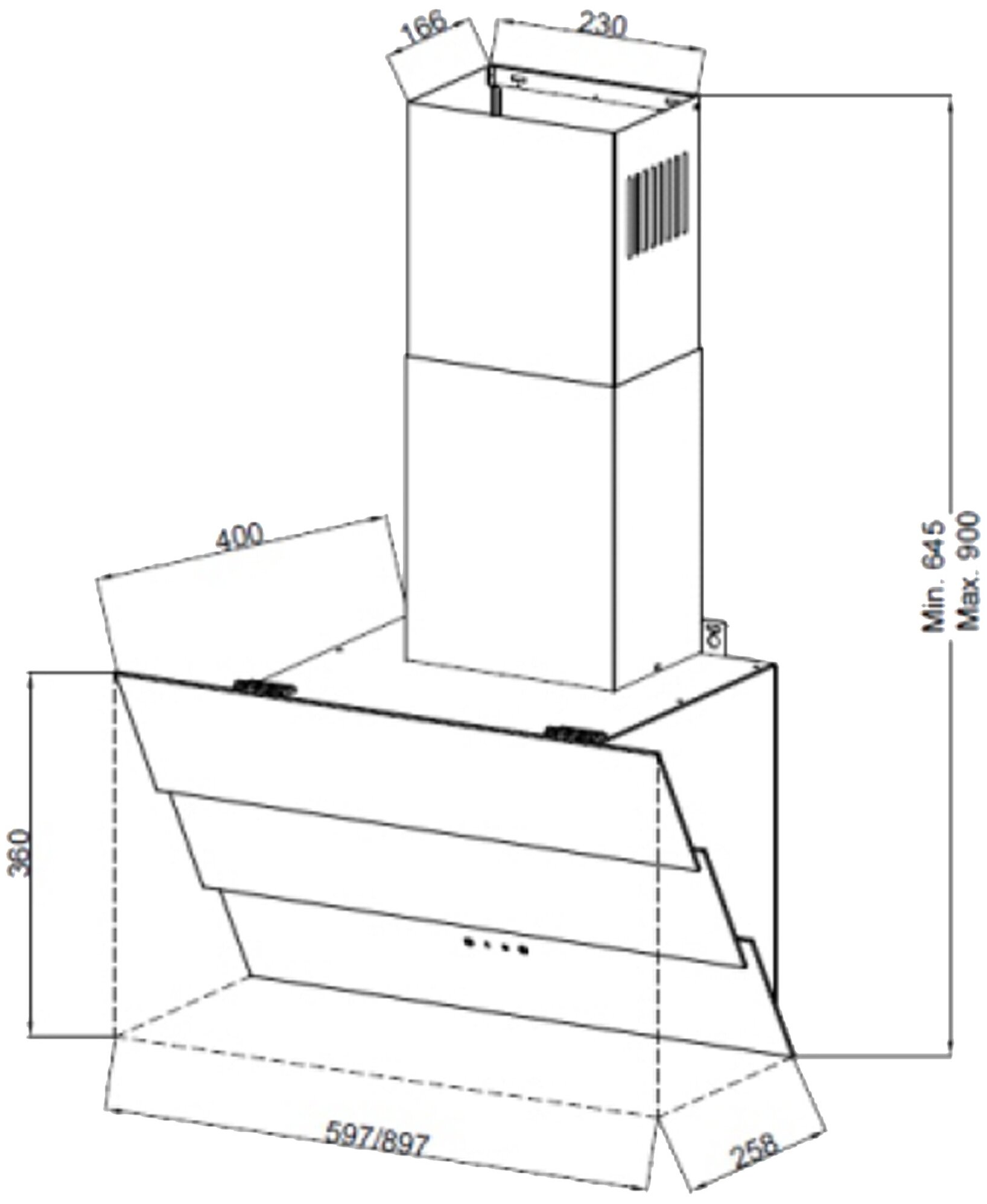 •KF-T carbon filter is purchased separately; •Dimensions of the hood: HxWxD, mm: 720-950x600x400; •Air duct diameter, mm: 120–150