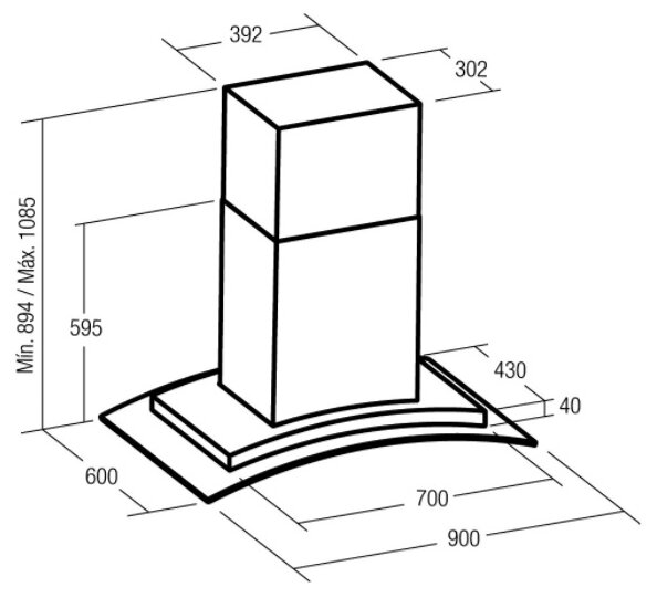 Form factor: dome, operating modes: exhaust / circulation, maximum productivity: 500 m³/hour, installation type: wall-mounted, lighting type: halogen lamp, installation width: 90 cm, additional functions: intensive