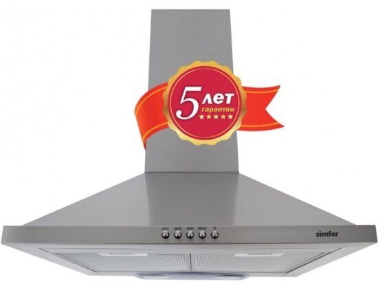 Form factor: dome, width: 60 cm, depth: 45 cm, operating modes: outlet, maximum productivity: 500 m³/hour, installation type: wall-mounted, filter: grease, control type: mechanical, lighting type: halogen lamps