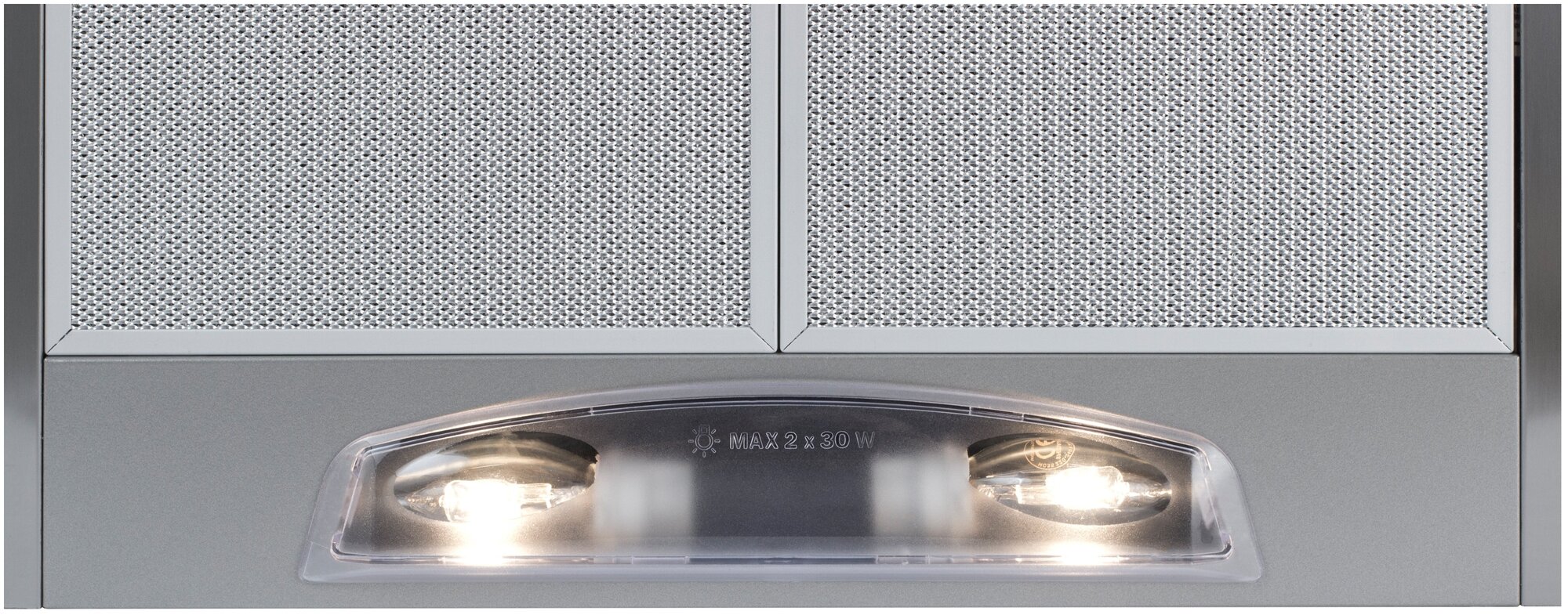 Form factor: dome, width: 50 cm, depth: 50 cm, operating modes: outlet, maximum productivity: 500 m³/hour, installation type: wall-mounted, filter: grease, control type: mechanical, lighting type: halogen lamps