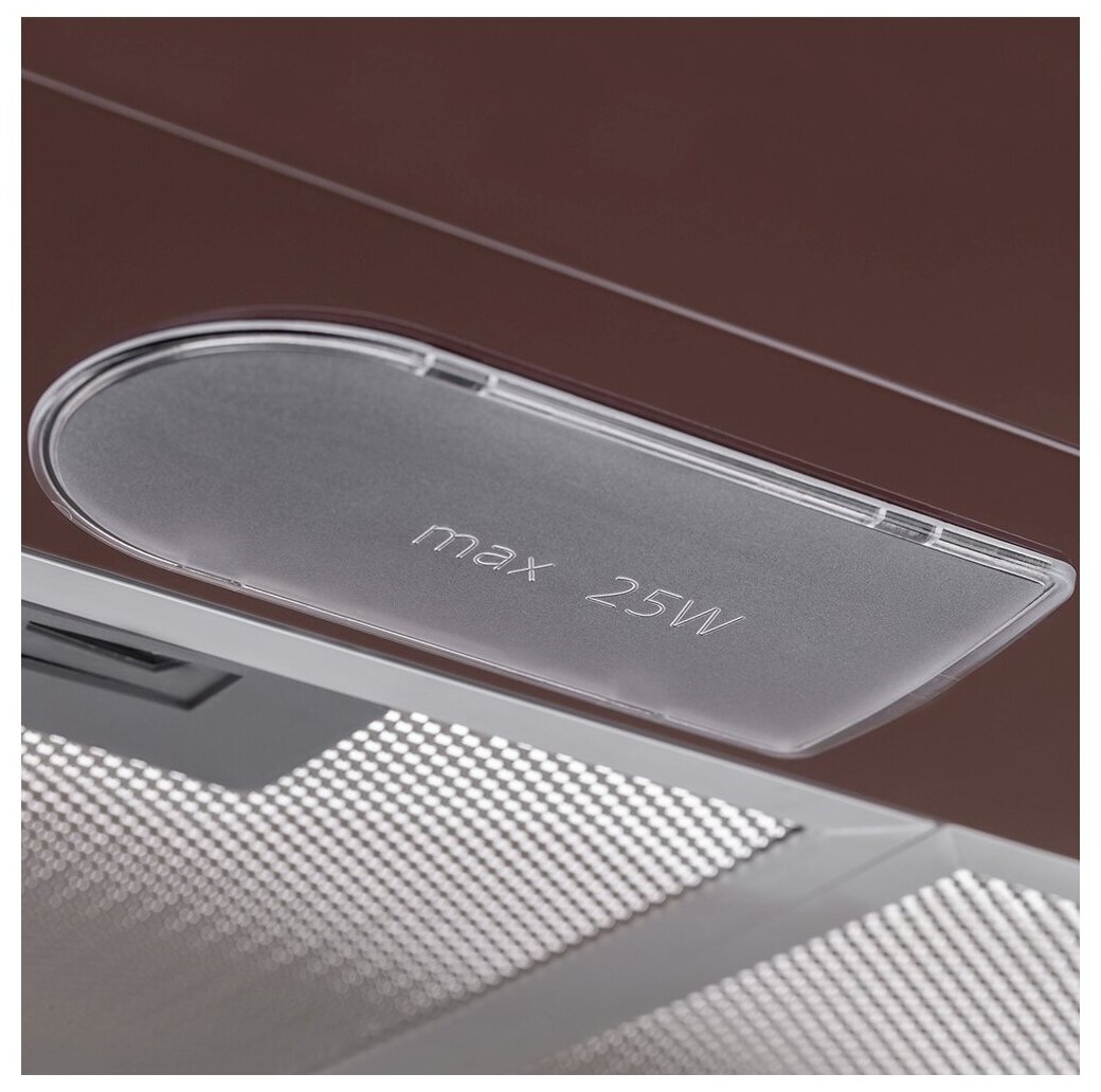 Form factor: dome, width: 50 cm, depth: 51 cm, operating modes: exhaust / circulation, maximum productivity: 320 m³/hour, installation type: wall-mounted, filter: grease, control type: mechanical, lighting type: laminated