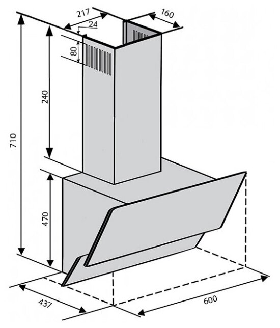 Form factor: dome, width: 60 cm, operating modes: exhaust / circulation, maximum productivity: 1000 m³/hour, installation type: wall-mounted, filter: grease, control type: electronic, lighting type: LED, wide