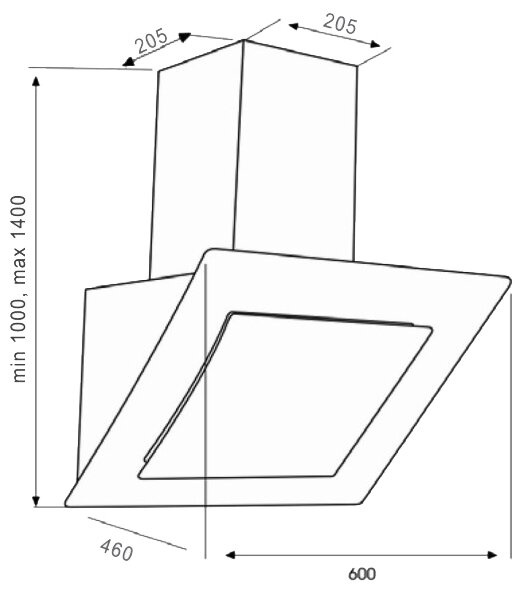 Form factor: inclined, width: 60 cm, depth: 46 cm, operating modes: exhaust / circulation, maximum productivity: 650 m³/hour, installation type: wall-mounted, filter: grease, control type: electronic, lighting type: light