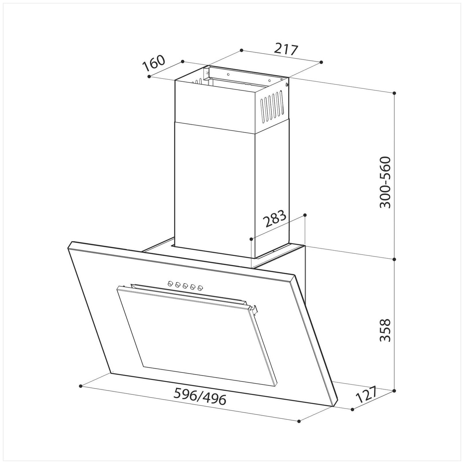 Form factor: inclined, width: 60 cm, depth: 28.30 cm, operating modes: drain / circulation, installation location: in the ceiling, maximum productivity: 680 m³/hour, installation type: wall-mounted, filter: grease, control type: e