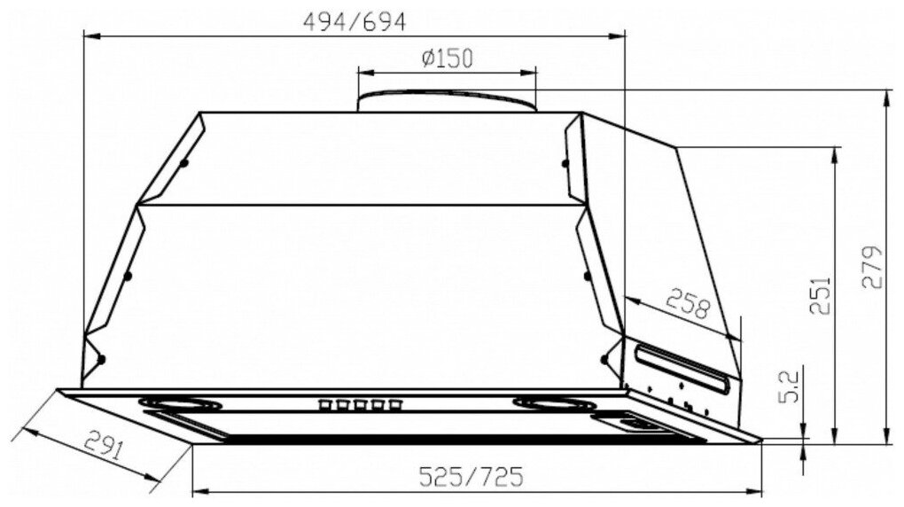 Form factor: dome, operating modes: exhaust / circulation, maximum productivity: 500 m³/hour, installation type: wall-mounted, lighting type: halogen lamp, installation width: 90 cm, additional functions: intensive