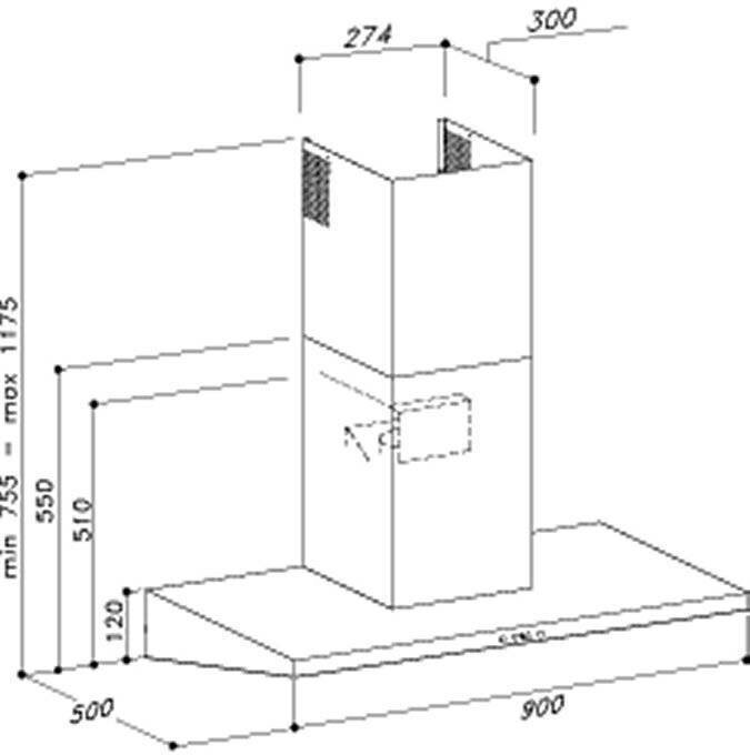 Form factor: dome, operating modes: exhaust / circulation, maximum productivity: 500 m³/hour, installation type: wall-mounted, lighting type: halogen lamp, installation width: 90 cm, additional functions: intensive