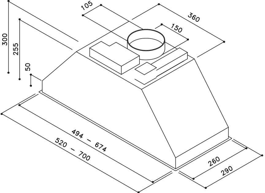 Form factor: dome, operating modes: exhaust / circulation, maximum productivity: 500 m³/hour, installation type: wall-mounted, lighting type: halogen lamp, installation width: 90 cm, additional functions: intensive