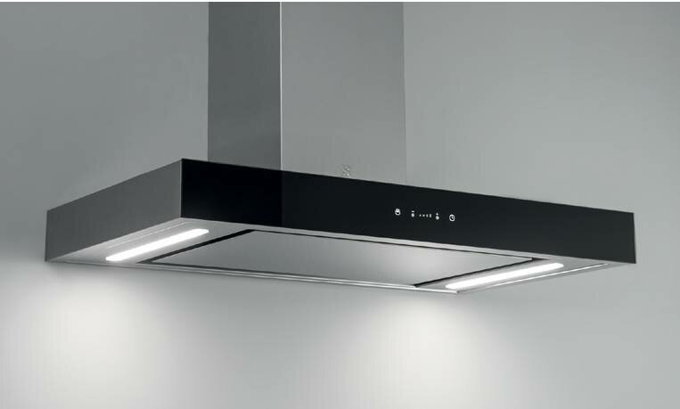 Form factor: dome, width: 90 cm, depth: 50 cm, operating modes: exhaust / circulation, maximum productivity: 900 m³/hour, installation type: wall-mounted, filter: grease, control type: electronic, lighting type: light