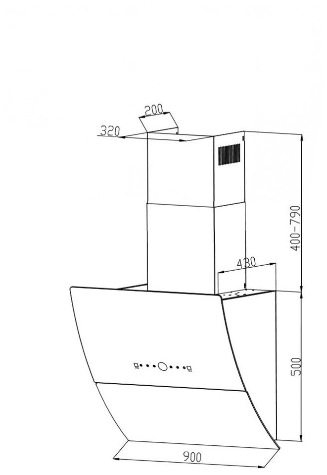Form factor: dome, operating modes: exhaust / circulation, maximum productivity: 500 m³/hour, installation type: wall-mounted, lighting type: halogen lamp, installation width: 90 cm, additional functions: intensive