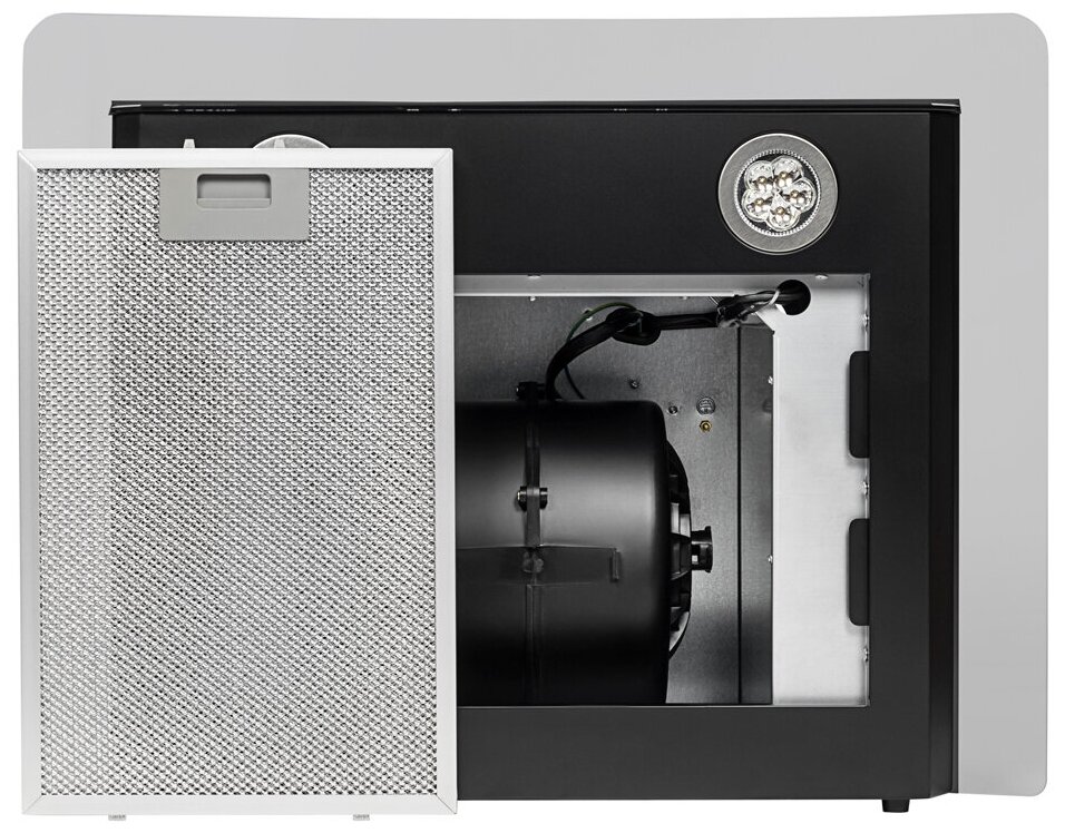 Form factor: dome, width: 60 cm, depth: 46 cm, operating modes: exhaust / circulation, maximum productivity: 1050 m³/hour, installation type: wall-mounted, filter: grease + carbon, control type: electronic, lighting type