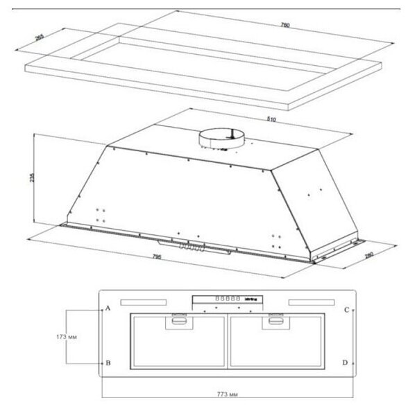 Form factor: built-in, width: 90 cm, lighting type: LED