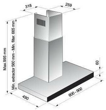 Form factor: dome, operating modes: exhaust / circulation, maximum productivity: 500 m³/hour, installation type: wall-mounted, lighting type: halogen lamp, installation width: 90 cm, additional functions: intensive
