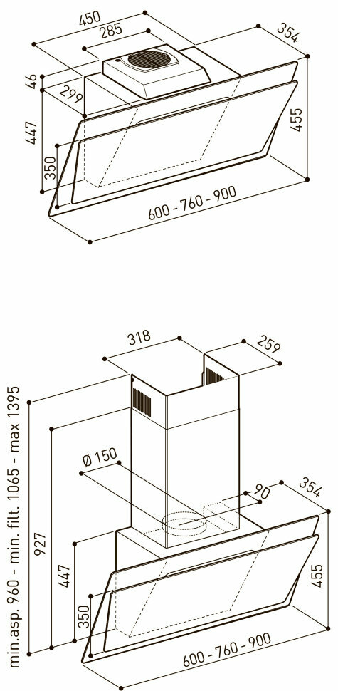 Form factor: inclined, width: 60 cm, depth: 34 cm, operating modes: drain / circulation, installation location: Wall-mounted, maximum productivity: 750 m³/hour, installation type: wall-mounted, filter: grease, control type: e