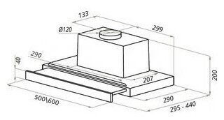 Form factor: built-in, maximum productivity: 720 m³/hour, maximum noise level: 49 dB, cabinet installation type: pull-out