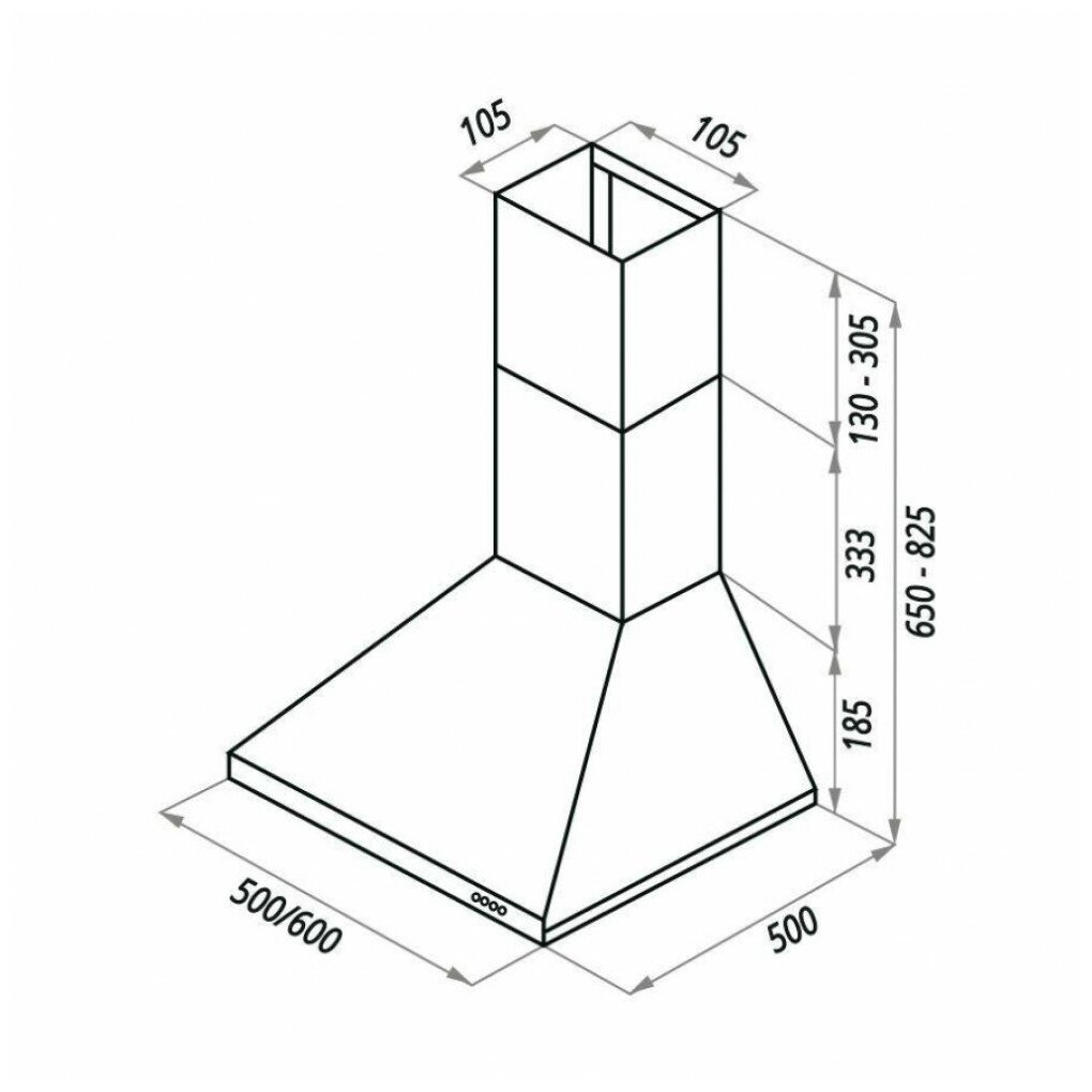 Form factor: dome, operating modes: exhaust / circulation, maximum productivity: 500 m³/hour, installation type: wall-mounted, lighting type: halogen lamp, installation width: 90 cm, additional functions: intensive