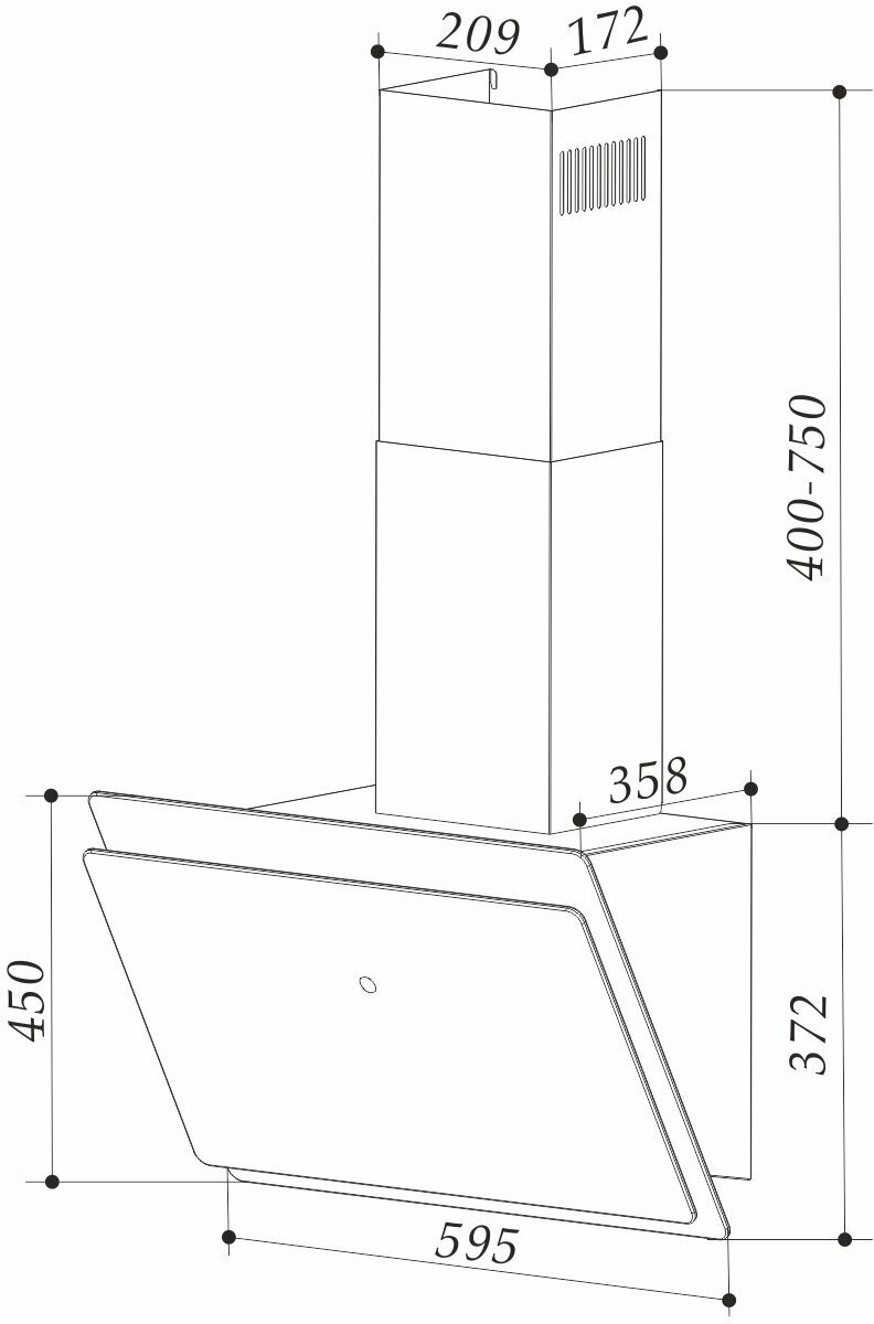 Form factor: dome, operating modes: exhaust / circulation, maximum productivity: 500 m³/hour, installation type: wall-mounted, lighting type: halogen lamp, installation width: 90 cm, additional functions: intensive