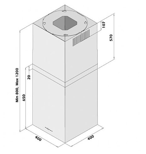 Form factor: dome, width: 40 cm, depth: 40 cm, operating modes: exhaust / circulation, maximum productivity: 920 m³/hour, installation type: island, filter: grease, control type: electronic, lighting type: halogen