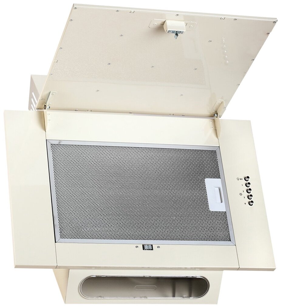 Form factor: inclined, width: 59.60 cm, depth: 35.50 cm, operating modes: exhaust / circulation, maximum productivity: 700 m³/hour, installation type: wall-mounted, filter: grease, control type: mechanical, lighting type: