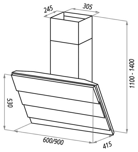 Form factor: inclined, width: 90 cm, depth: 41.50 cm, operating modes: exhaust / circulation, maximum productivity: 1050 m³/hour, filter: grease, control type: electronic, lighting type: halogen lamp, maximum