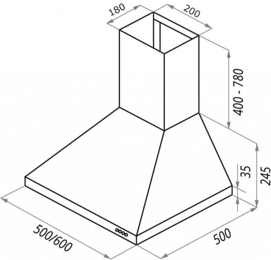 Form factor: dome, operating modes: exhaust / circulation, maximum productivity: 500 m³/hour, installation type: wall-mounted, lighting type: halogen lamp, installation width: 90 cm, additional functions: intensive