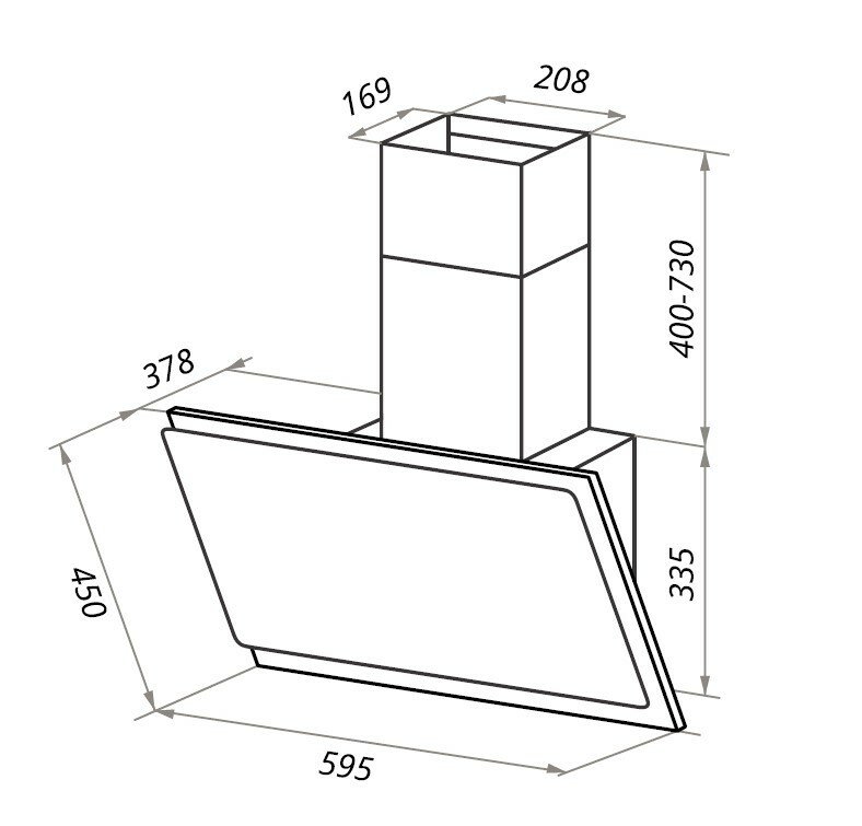 Description: Form factor: inclined, width: 59.50 cm, depth: 37.80 cm, operating modes: exhaust / circulation, maximum productivity: 1050 m³/hour, filter: grease, control type: electronic, lighting type: LED, maximum
