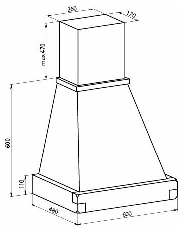 Form factor: dome, operating modes: exhaust / circulation, maximum productivity: 500 m³/hour, installation type: wall-mounted, lighting type: halogen lamp, installation width: 90 cm, additional functions: intensive