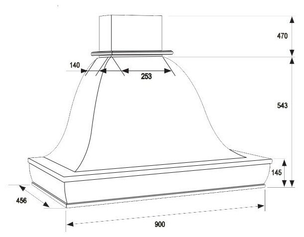 Operating modes: exhaust / circulation, maximum capacity: 900 m³/hour, filter: grease, control type: mechanical, lighting type: incandescent lamp, duct pipe diameter: 150 mm, motor power: 240 W