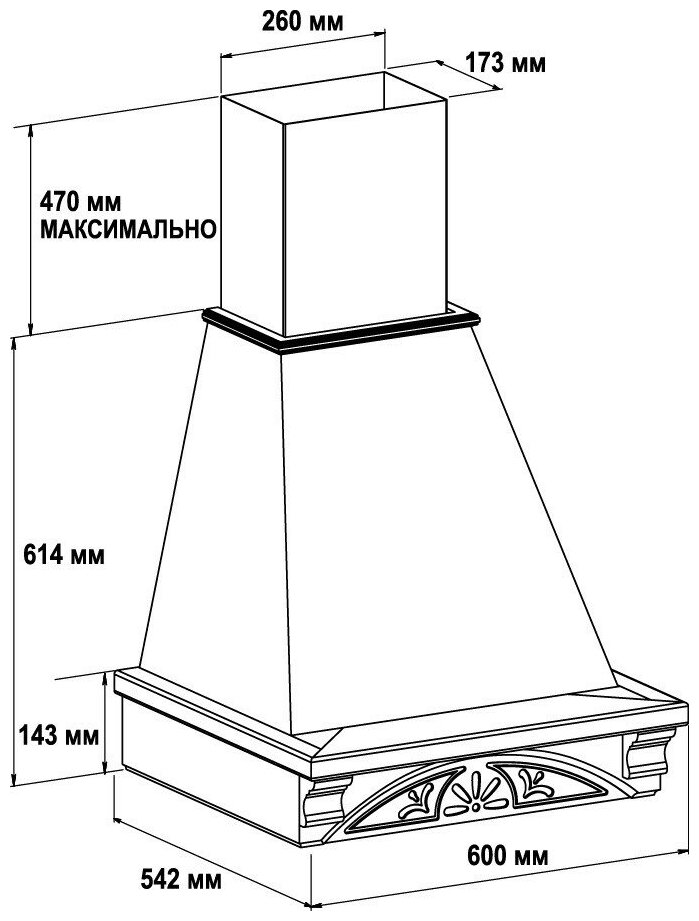 Form factor: dome, operating modes: exhaust / circulation, maximum productivity: 500 m³/hour, installation type: wall-mounted, lighting type: halogen lamp, installation width: 90 cm, additional functions: intensive