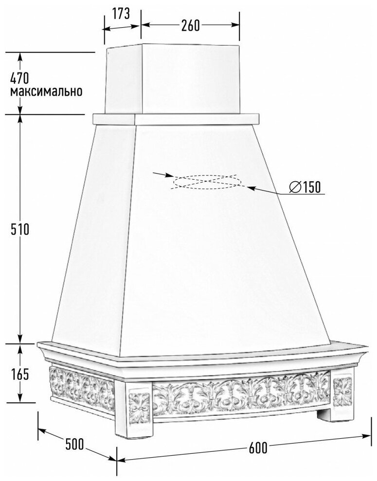 Form factor: dome, operating modes: exhaust / circulation, maximum productivity: 500 m³/hour, installation type: wall-mounted, lighting type: halogen lamp, installation width: 90 cm, additional functions: intensive