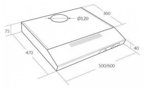 Width: 60 cm, operating modes: exhaust / circulation, maximum capacity: 520 m³/hour, control type: mechanical, lighting type: incandescent lamp, maximum noise level: 48 dB, duct diameter: 120