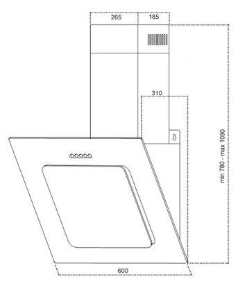 Form factor: inclined, width: 50 cm, depth: 31 cm, operating modes: exhaust / circulation, maximum productivity: 600 m³/hour, filter: grease, control type: electronic, lighting type: LED, built-in width