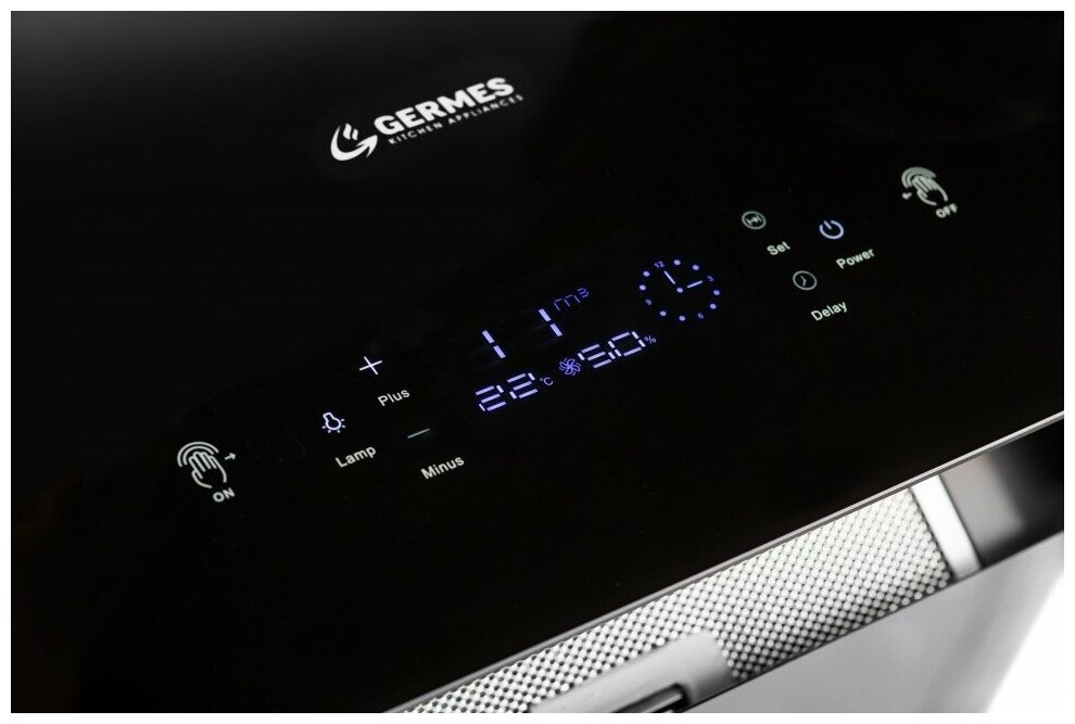 Form factor: inclined, width: 60 cm, depth: 38 cm, operating modes: outlet, maximum productivity: 1260 m³/hour, installation type: wall-mounted, filter: grease, control type: electronic, lighting type: LED, ma