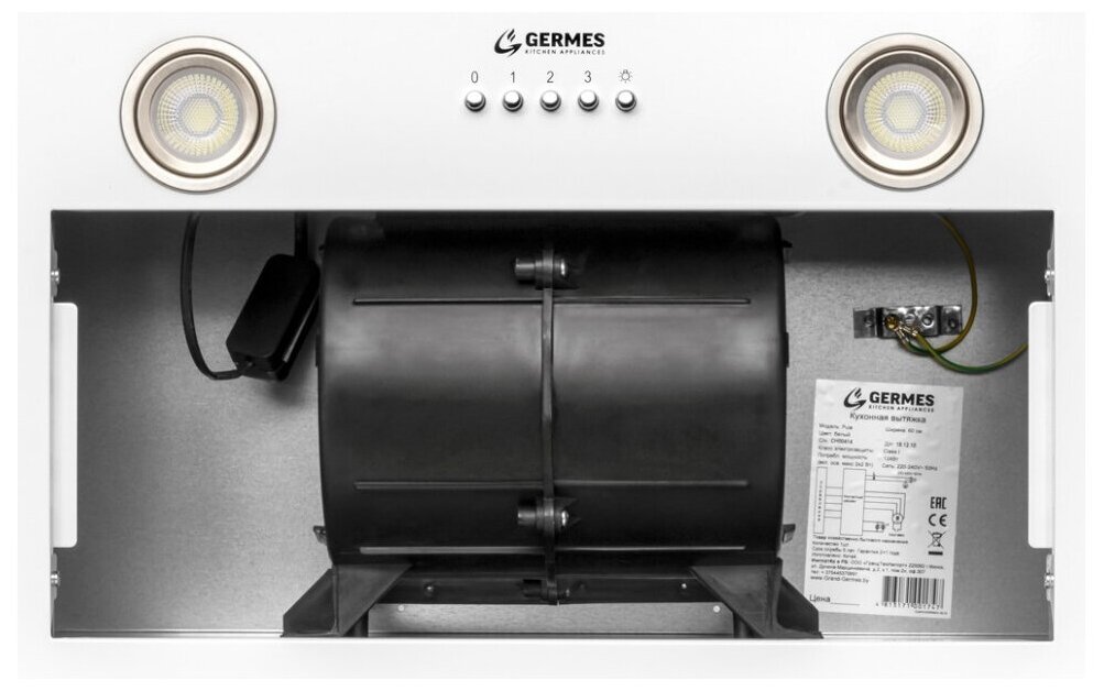 When using a hood without connecting to a ventilation shaft in recirculation mode, you must additionally purchase a set of Germes Type 7 carbon filters; number of lighting lamps: 2; power of each lamp: 1