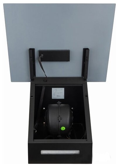 Form factor: inclined, width: 60 cm, depth: 36 cm, operating modes: exhaust / circulation, maximum productivity: 750 m³/hour, filter: grease + carbon, control type: electronic, lighting type: LED, max