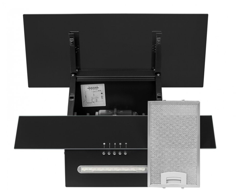Form factor: inclined, width: 50 cm, depth: 36 cm, operating modes: exhaust / circulation, maximum productivity: 650 m³/hour, control type: electronic, lighting type: LED, maximum noise level: 46 dB, w