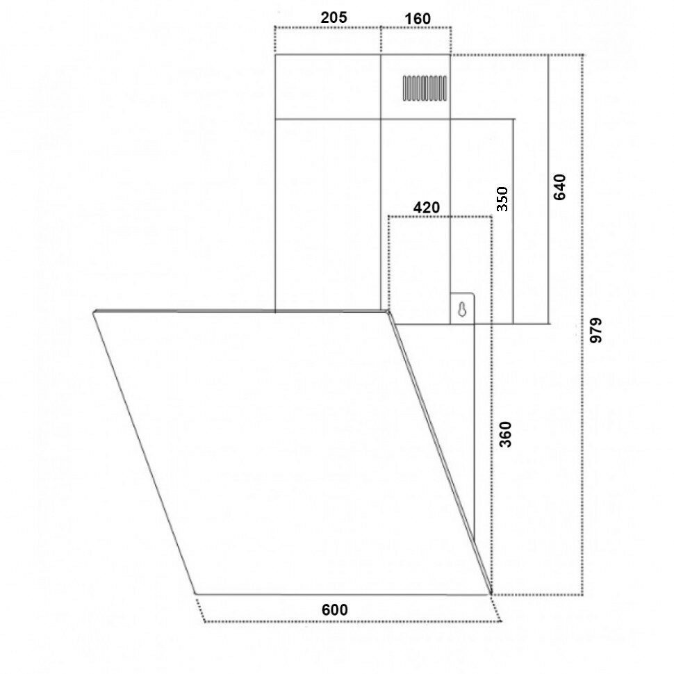 Form factor: inclined, width: 60 cm, depth: 40 cm, operating modes: exhaust / circulation, maximum productivity: 750 m³/hour, installation type: wall-mounted, filter: grease, control type: mechanical, lighting type: light