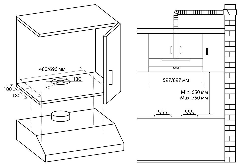 Form factor: flat, width: 60 cm, depth: 50 cm, operating modes: drain / circulation, installation location: Wall-mounted, maximum productivity: 350 m³/hour, installation type: wall-mounted, filter: grease, control type: fur