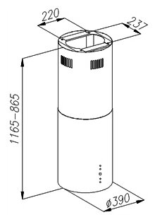 Form factor: dome, width: 38 cm, depth: 38 cm, operating modes: exhaust / circulation, maximum productivity: 800 m³/hour, installation type: island, filter: grease, control type: electronic, lighting type: halogen