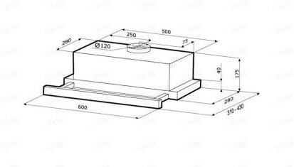 Form factor: dome, operating modes: exhaust / circulation, maximum productivity: 500 m³/hour, installation type: wall-mounted, lighting type: halogen lamp, installation width: 90 cm, additional functions: intensive
