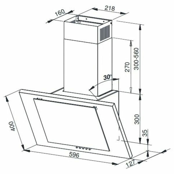 Form factor: dome, width: 59.60 cm, depth: 35.50 cm, operating modes: exhaust / circulation, maximum productivity: 900 m³/hour, installation type: wall-mounted, filter: grease, control type: mechanical, lighting type: