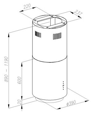 Form factor: dome, width: 40 cm, depth: 40 cm, operating modes: exhaust / circulation, maximum productivity: 538 m³/hour, installation type: island, filter: grease, control type: electronic, lighting type: light