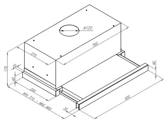 Form factor: dome, operating modes: exhaust / circulation, maximum productivity: 500 m³/hour, installation type: wall-mounted, lighting type: halogen lamp, installation width: 90 cm, additional functions: intensive