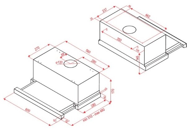 Form factor: dome, operating modes: exhaust / circulation, maximum productivity: 500 m³/hour, installation type: wall-mounted, lighting type: halogen lamp, installation width: 90 cm, additional functions: intensive
