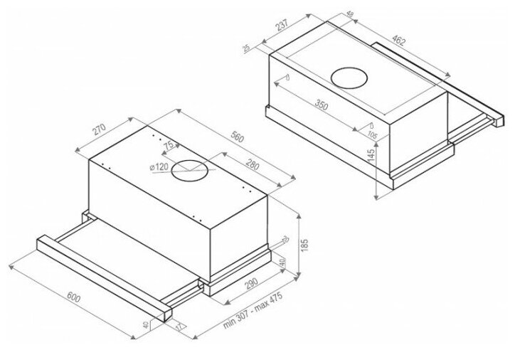 Form factor: built-in, width: 60 cm, depth: 29 cm, operating modes: drain / circulation, installation location: in a cabinet, maximum productivity: 1000 m³/hour, filter: grease, control type: mechanical, lighting type: