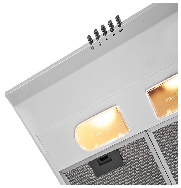 Form factor: dome, width: 60 cm, depth: 51 cm, operating modes: exhaust / circulation, maximum productivity: 320 m³/hour, installation type: wall-mounted, filter: grease, control type: mechanical, lighting type: laminated
