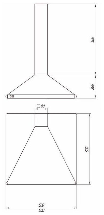 Form factor: dome, width: 60 cm, depth: 50 cm, operating modes: exhaust / circulation, maximum productivity: 200 m³/hour, installation type: wall-mounted, filter: grease, control type: mechanical, lighting type: laminated