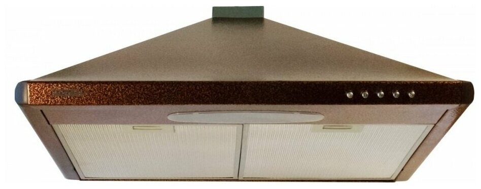 Form factor: dome, width: 60 cm, depth: 50 cm, operating modes: exhaust / circulation, maximum productivity: 420 m³/hour, installation type: wall-mounted, filter: grease, control type: mechanical, lighting type: laminated