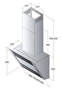 Form factor: inclined, width: 60 cm, depth: 42 cm, operating modes: exhaust / circulation, maximum productivity: 850 m³/hour, installation type: wall-mounted, filter: grease, control type: mechanical, lighting type: gal