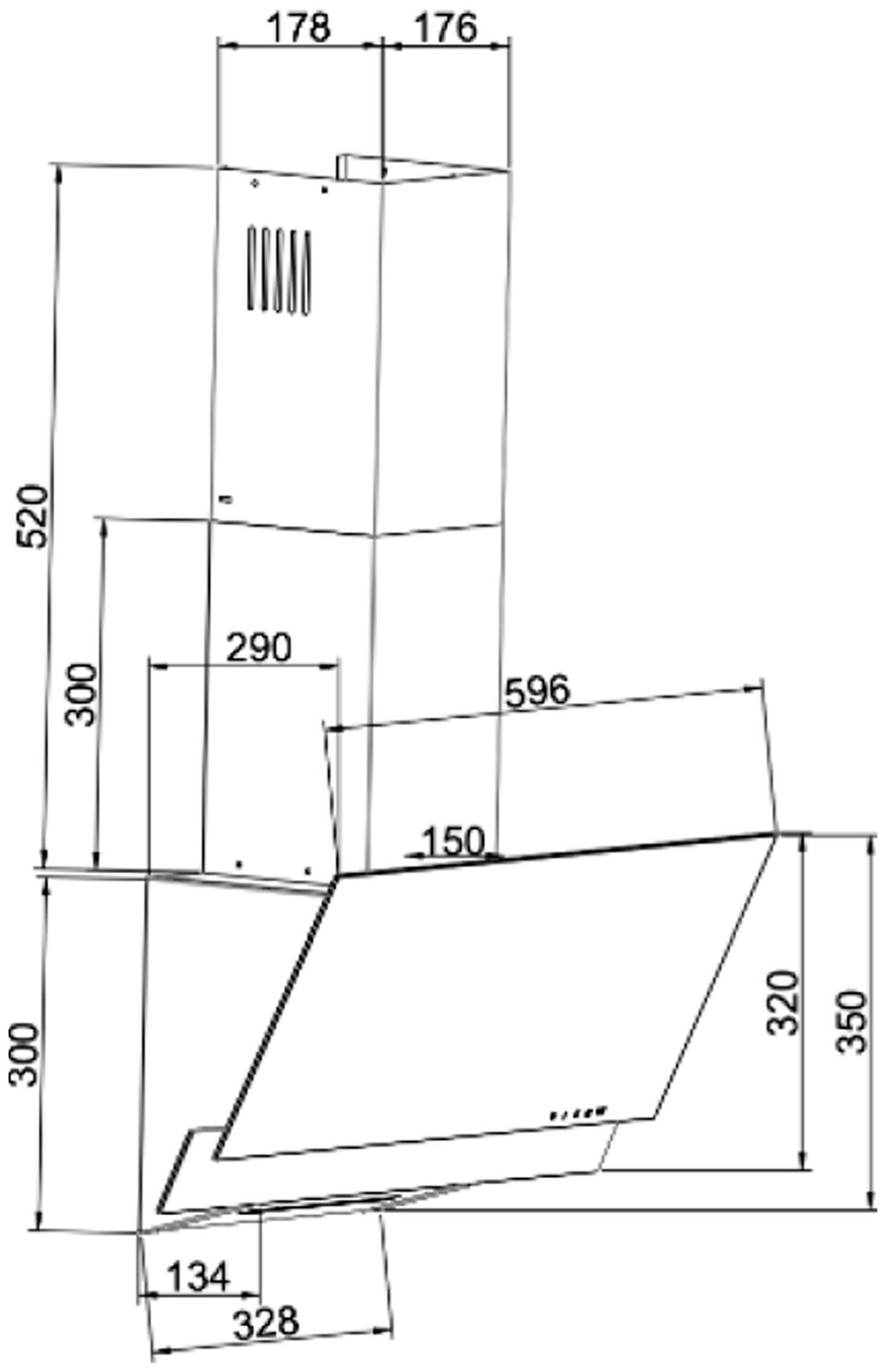 Form factor: inclined, width: 60 cm, depth: 29 cm, operating modes: exhaust / circulation, maximum productivity: 1100 m³/hour, installation type: wall-mounted, filter: grease + carbon, control type: mechanical, osc type