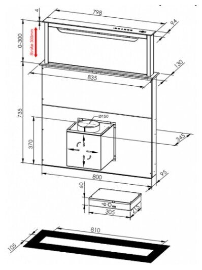 Form factor: dome, operating modes: exhaust / circulation, maximum productivity: 500 m³/hour, installation type: wall-mounted, lighting type: halogen lamp, installation width: 90 cm, additional functions: intensive